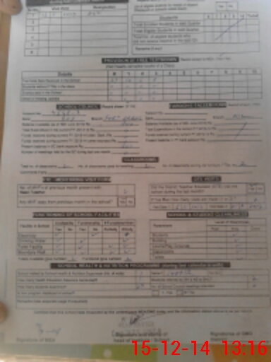 | School Visited by School Health & Nutrition Supervisor (No. of Visits) | 1 | Name1: | Shabbir | Name2: | O |