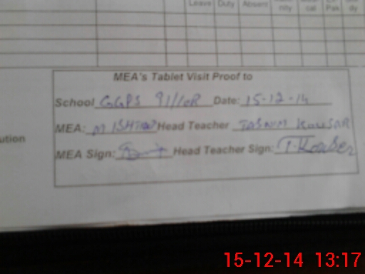 | Attendance Register | Head Teacher | MEA with School | Visit Proof |