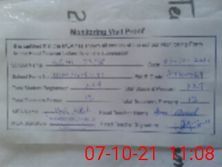 | Monitoring Date: 07-10-2021 | Start Time: 07-10-2021 10:19 AM | End Time: 07-10-2021 11:09 AM | Name of MEA: Mu**** ha**** ul**** BN25 | |
