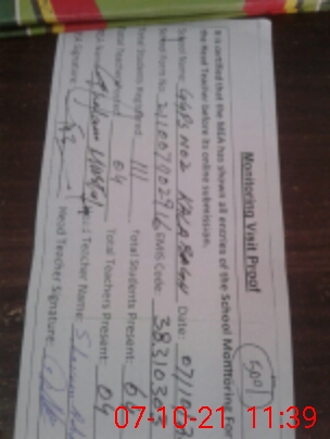 | Certified that this School was Inspected by the Undersigned MEA/DMO Today and the Information Stated Above is as Per Record. | |||||