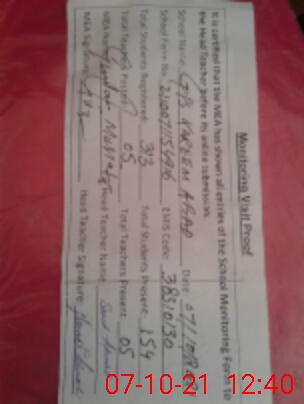 | Certified that this School was Inspected by the Undersigned MEA/DMO Today and the Information Stated Above is as Per Record. | |||||