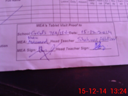 | Attendance Register | Head Teacher | MEA with School | Visit Proof |