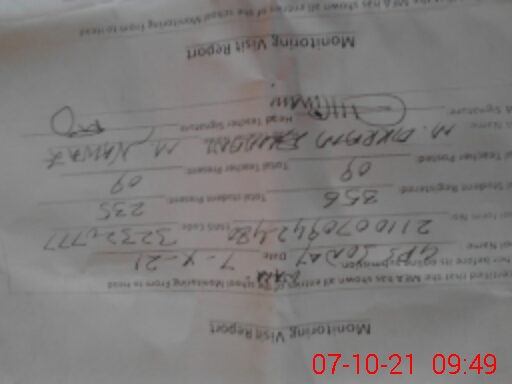 | Monitoring Date: 07-10-2021 | Start Time: 07-10-2021 09:14 AM | End Time: 07-10-2021 10:00 AM | Name of MEA: M.Ak**** Al**** | |