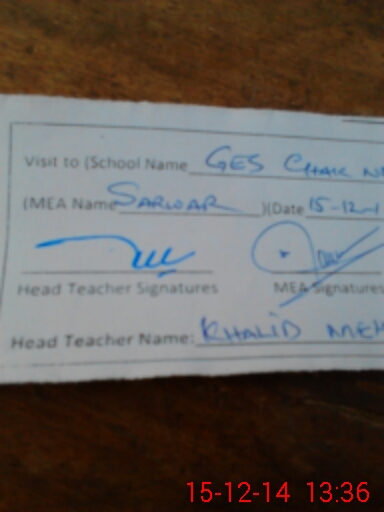 | Attendance Register | Head Teacher | MEA with School | Visit Proof |