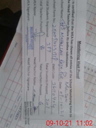 | Certified that this School was Inspected by the Undersigned MEA/DMO Today and the Information Stated Above is as Per Record. | |||||