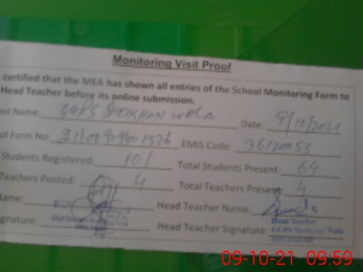 | EMIS Code: 36120053 | Name of School: GGPS SHEIKHAN WALA MUZA TODARPUR SHUJABAD | |||
