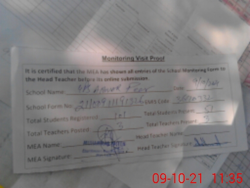 | Attendance Register | Head Teacher | MEA with School | Visit Proof |