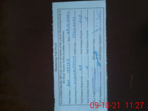 | Attendance Register | Head Teacher | MEA with School | Visit Proof |