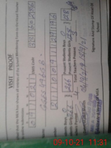 | Attendance Register | Head Teacher | MEA with School | Visit Proof |