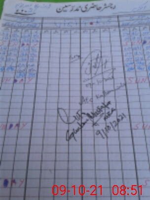 | CNIC | Full Name | Designation | R/C | Absence During Last Calender Month |