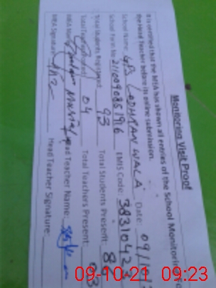 | Attendance Register | Head Teacher | MEA with School | Visit Proof |