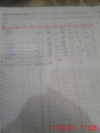 | No. of Students Present - Male | 0 | 0 | 49 | 74 | 63 | 72 | 62 | 53 | 65 | 66 | 63 | 68 | 57 | 692 | ||