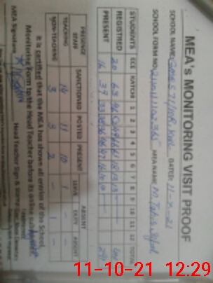 | Monitoring Date: 11-10-2021 | Start Time: 11-10-2021 10:55 AM | End Time: 11-10-2021 12:30 PM | Name of MEA: M.Ta**** Iq**** (S**** | |