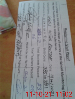 | Attendance Register | Head Teacher | MEA with School | Visit Proof |