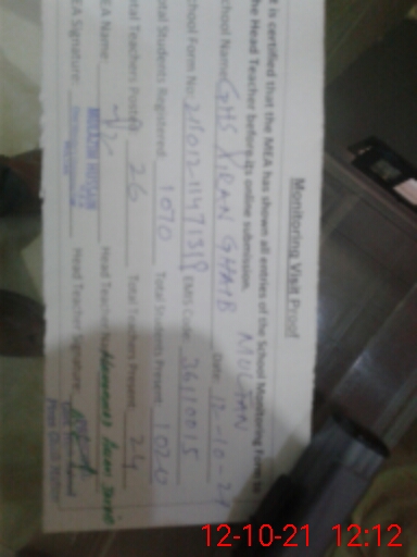 | EMIS Code: 36110015 | Name of School: GHS PIRAN GHAIB NEAR THERMAL POWER STATION | |||