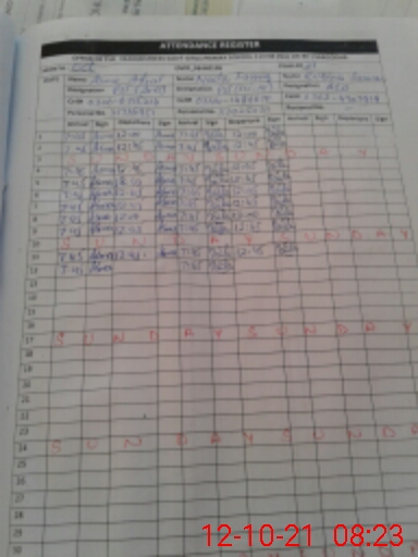 | CNIC | Full Name | Designation | R/C | Absence During Last Calender Month |