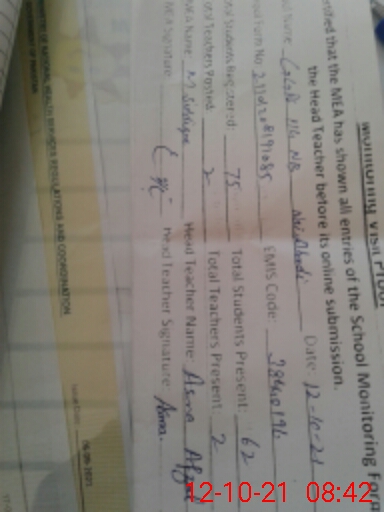 | Certified that this School was Inspected by the Undersigned MEA/DMO Today and the Information Stated Above is as Per Record. | |||||