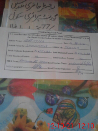 | Name: MA**** AH**** Designation: (School Headmaster's/Headmistress's) PST Phone/Cell Number: 03**** |