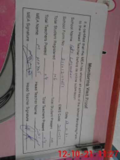 | Certified that this School was Inspected by the Undersigned MEA/DMO Today and the Information Stated Above is as Per Record. | |||||