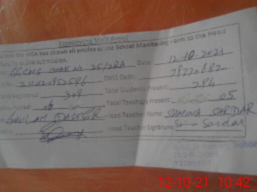 | Attendance Register | Head Teacher | MEA with School | Visit Proof |