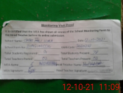 | Attendance Register | Head Teacher | MEA with School | Visit Proof |
