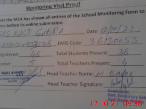 | EMIS Code: 36130053 | Name of School: GES BASTI GAGRA P/O JHOKE VAINCE | |||