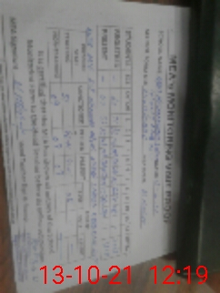 | Monitoring Date: 13-10-2021 | Start Time: 13-10-2021 10:26 AM | End Time: 13-10-2021 12:19 PM | Name of MEA: MU**** AS**** | |