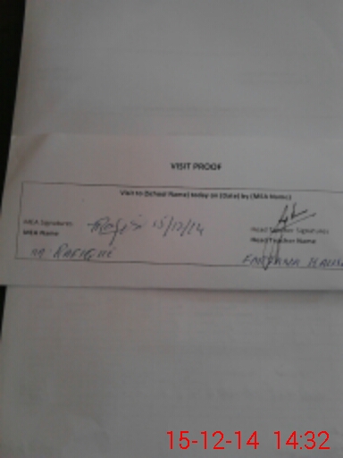 | Attendance Register | Head Teacher | MEA with School | Visit Proof |