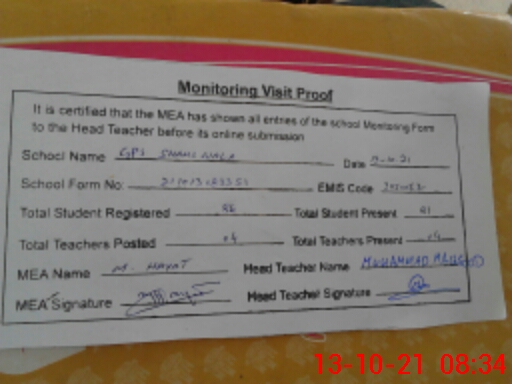 | EMIS Code: 31150052 | Name of School: GPS SHAMAS WALA | |||
