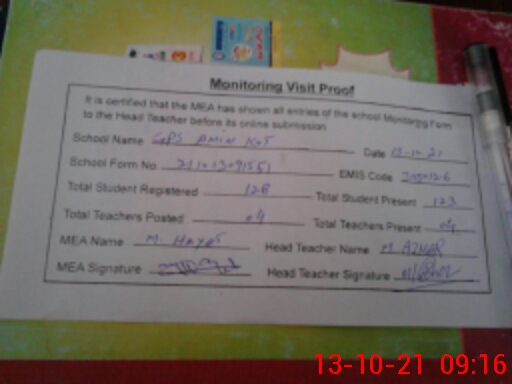 | EMIS Code: 31150126 | Name of School: GPS AMIN KOT | |||