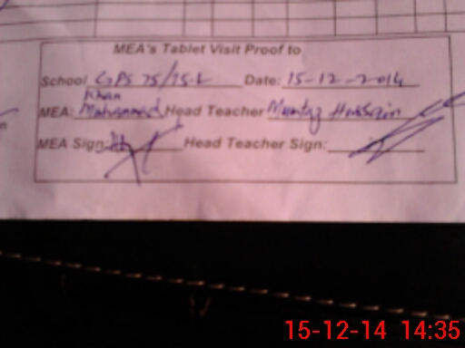 | Attendance Register | Head Teacher | MEA with School | Visit Proof |