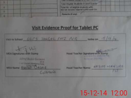 | Attendance Register | Head Teacher | MEA with School | Visit Proof |