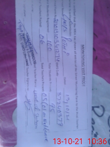 | Attendance Register | Head Teacher | MEA with School | Visit Proof |