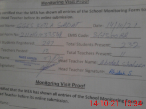 | EMIS Code: 36130088 | Name of School: GGES KOTLA SADAT NEAR SADIQ ABAD MULTAN | |||