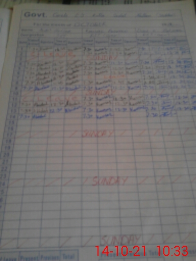 | No. of Students Present - Male | 3 | 0 | 13 | 14 | 7 | 5 | 5 | 5 | 0 | 0 | 0 | 52 | ||||