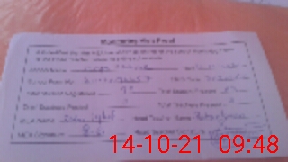 | Monitoring Date: 14-10-2021 | Start Time: 14-10-2021 09:35 AM | End Time: 14-10-2021 09:48 AM | Name of MEA: Za**** Iq**** BN**** | |