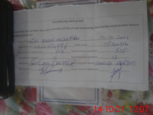 | Attendance Register | Head Teacher | MEA with School | Visit Proof |