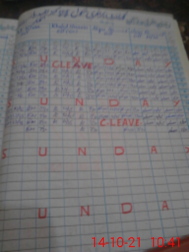 | CNIC | Full Name | Designation | R/C | Absence During Last Calender Month |
