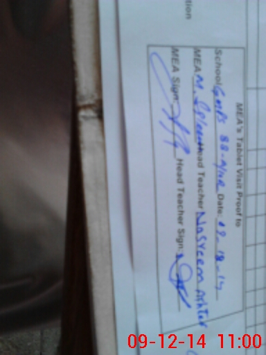 | Attendance Register | Head Teacher | MEA with School | Visit Proof |