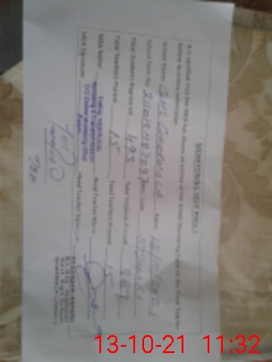 | Attendance Register | Head Teacher | MEA with School | Visit Proof |