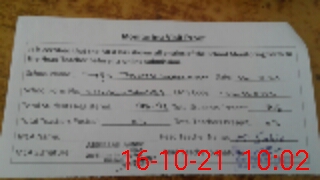 | Monitoring Date: 16-10-2021 | Start Time: 16-10-2021 09:40 AM | End Time: 16-10-2021 10:03 AM | Name of MEA: AB**** AA**** | |