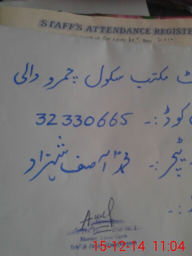 | Name: M.**** SH**** Designation: (School Headmaster's/Headmistress's) ESE Phone/Cell Number: 03**** |