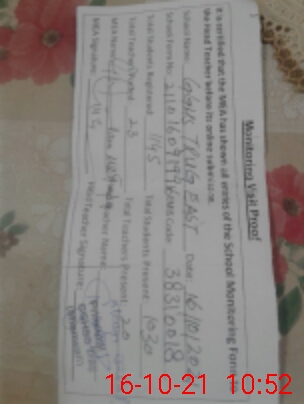 | Attendance Register | Head Teacher | MEA with School | Visit Proof |