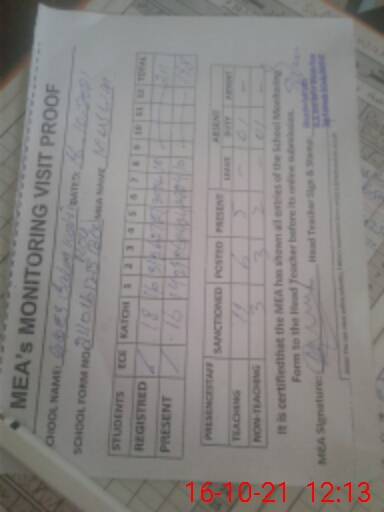 | Certified that this School was Inspected by the Undersigned MEA/DMO Today and the Information Stated Above is as Per Record. | |||||