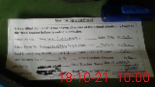 | Monitoring Date: 18-10-2021 | Start Time: 18-10-2021 09:35 AM | End Time: 18-10-2021 10:02 AM | Name of MEA: AB**** AA**** | |