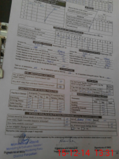 | School Visited by School Health & Nutrition Supervisor (No. of Visits) | 1 | Name1: | REHANA SHARIF | Name2: | NIL |