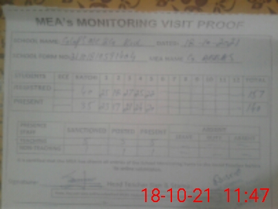 | Attendance Register | Head Teacher | MEA with School | Visit Proof |