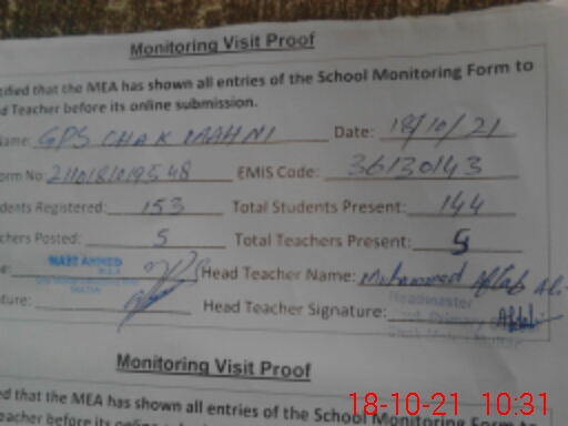 | EMIS Code: 36130143 | Name of School: GPS CHAK MAHNI | |||