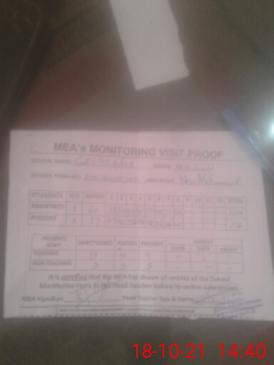 | Attendance Register | Head Teacher | MEA with School | Visit Proof |
