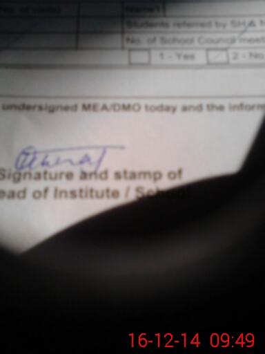 | Attendance Register | Head Teacher | MEA with School | Visit Proof |